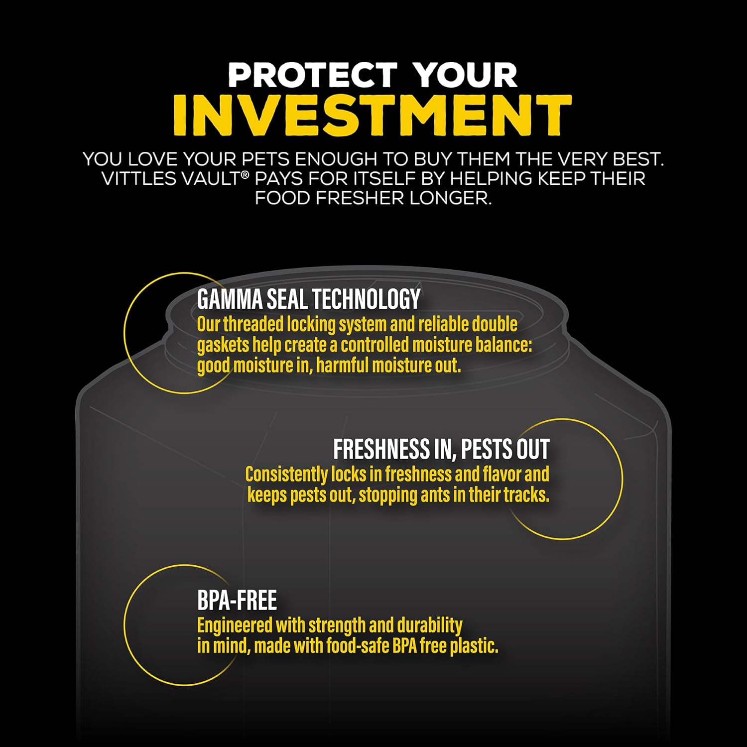• Say Goodbye to Pesky Pests: In addition to locking in freshness and flavor, GAMMA SEAL TECHNOLOGY keeps pests out, stopping ants and other insects out of this cat or dog food storage vault. Perfect for dry pet food