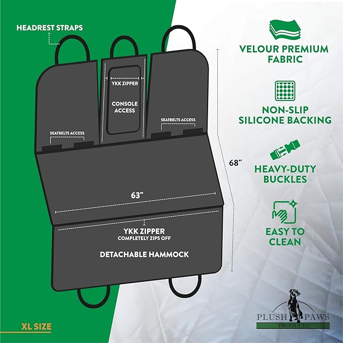Plush Paws Products Velvet Convertible Rear Seat Cover | Durable Diamond Stitching | Washable & Waterproof Back Seat Cover | Car, Truck & SUV | Nonslip, Tear Resistant Protection | X-Large Charcoal