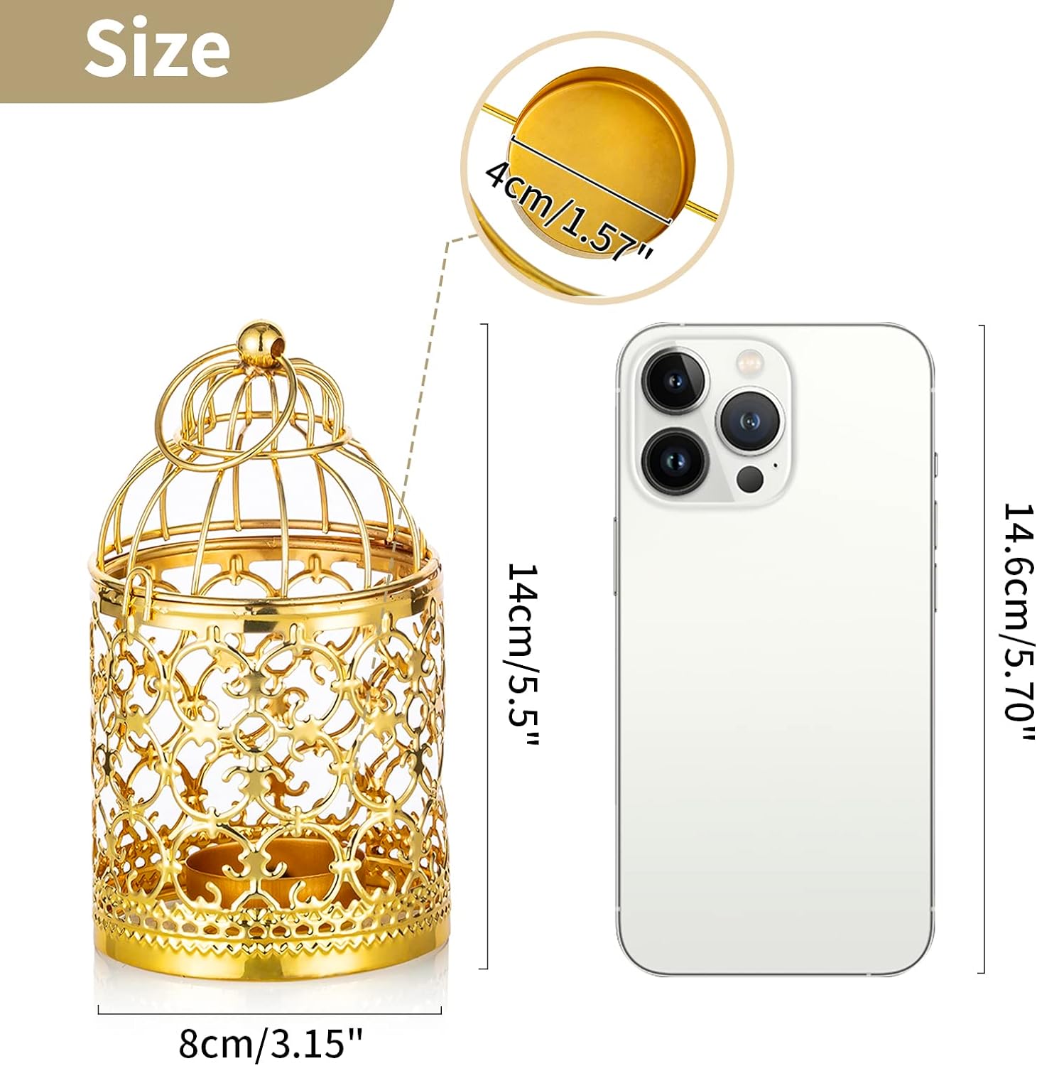 2 Pcs Small Metal Tealight Hanging Birdcage Lantern, Vintage Decorative Centerpieces of Wedding, Party, Gold