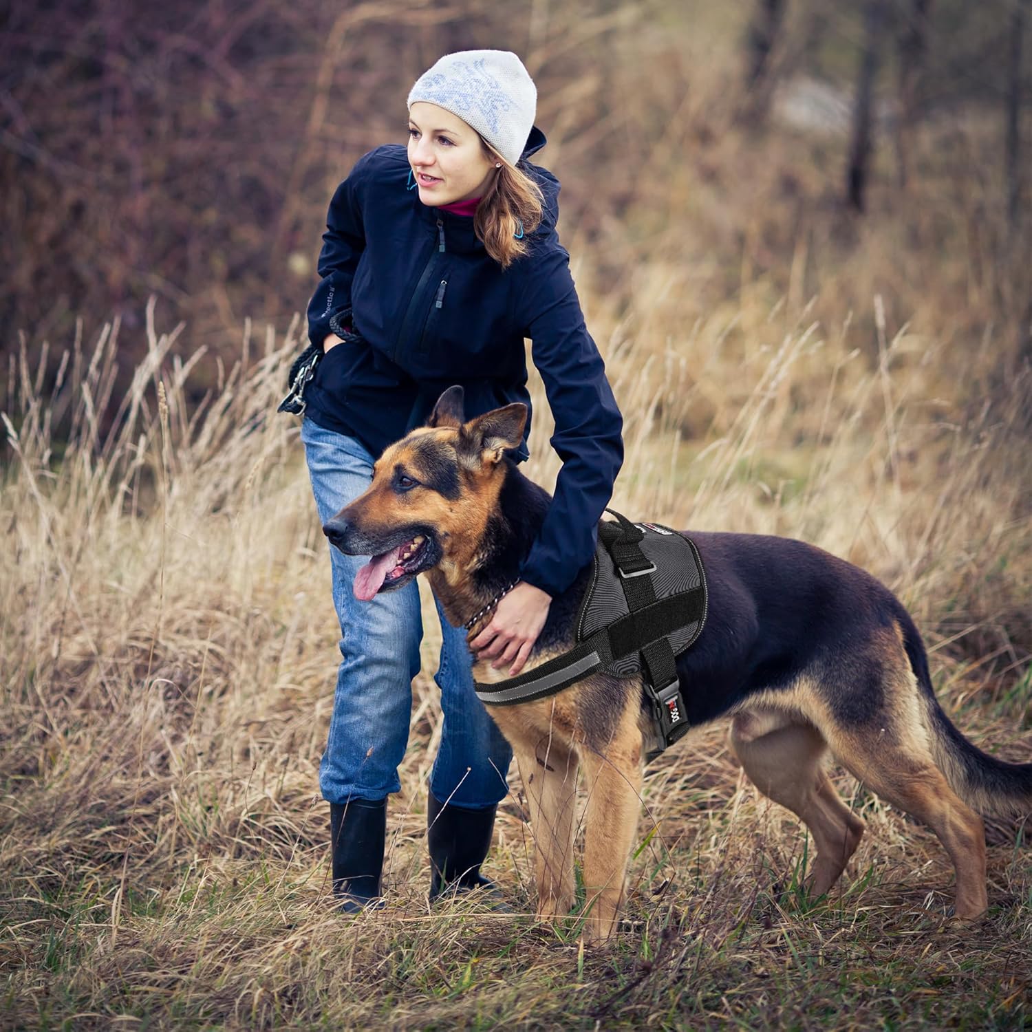 Dogline Dog Harness, Reflective No-Pull Adjustable Vest with Handle for Walking, Training, Breathable, No - Choke Harness for Small, Medium or Large Dogs Room for Patches Girth 15 to 18 in Black