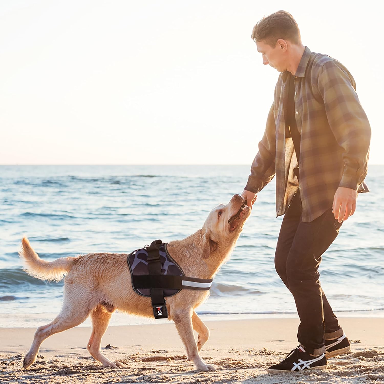 Dogline Dog Harness, Reflective No-Pull Adjustable Vest with Handle for Walking, Training, Breathable, No - Choke Harness for Small, Medium or Large Dogs Room for Patches Girraffe Grey XS 15"-18"
