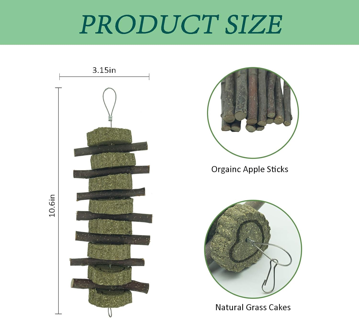 - Value Pack:A pack includes 2pcs bunny rabbit chew toys, apple sticks with heart shaped grass cakes.