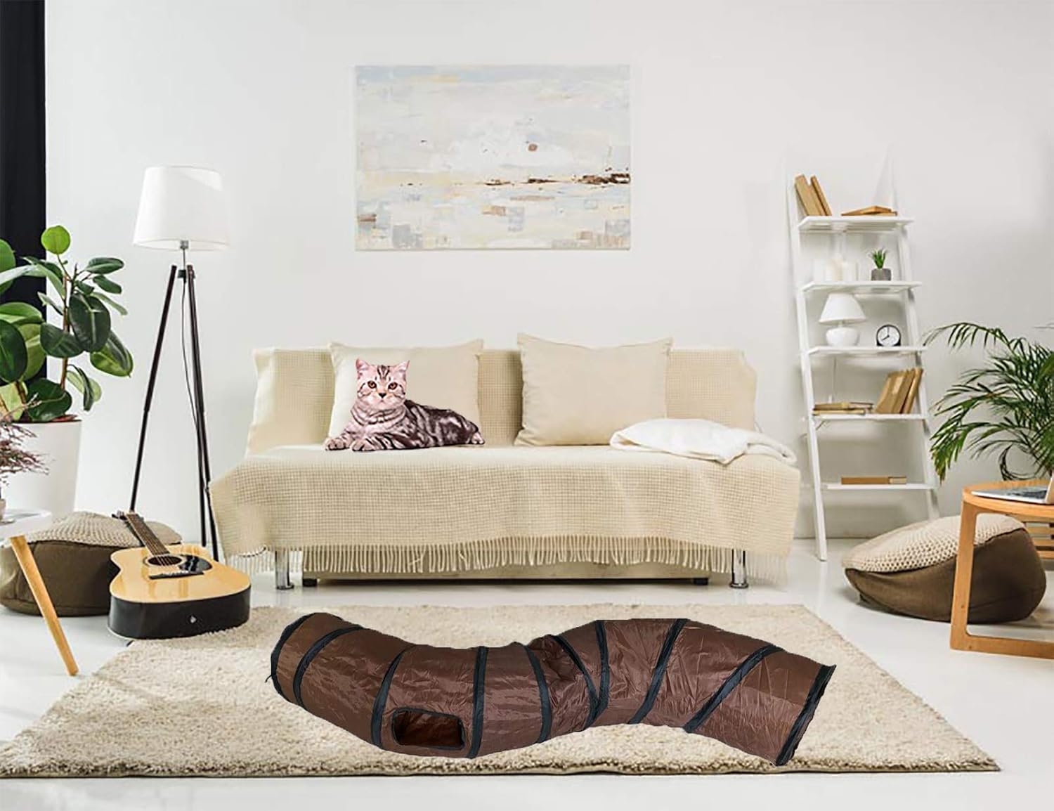iCAGY Cat Tunnel for Indoor Cats Interactive, Rabbit Tunnel Toys, Pet Toys Play Tunnels for Cats Kittens Rabbits Puppies Crinkle Pop Up Brown 47" Shape S