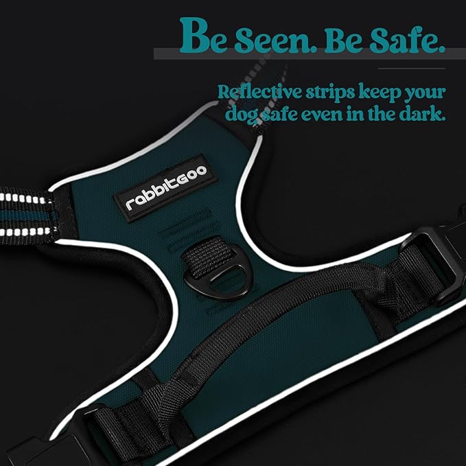 rabbitgoo Dog Harness No Pull with 2 Leash Clips, Adjustable Soft Padded, Reflective Oxford No Choke Pet Vest with Easy Control Handle for Large Dogs, Blue Coral, XL
