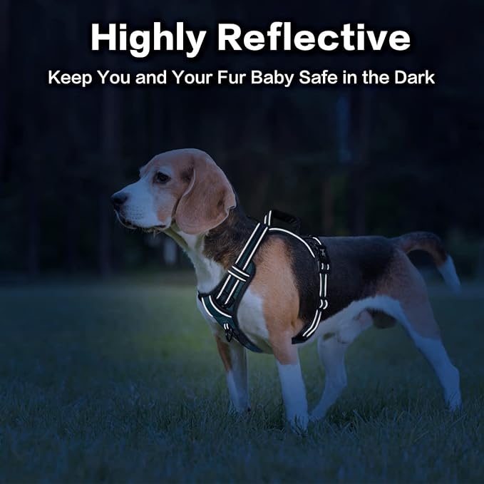 PoyPet No Pull Dog Harness, No Choke Front Clip Reflective Dog Vest with Soft Padded Vertical Handle, 3 Leash Attachments for Small Medium Large Dogs (Tumalo Teal,S)