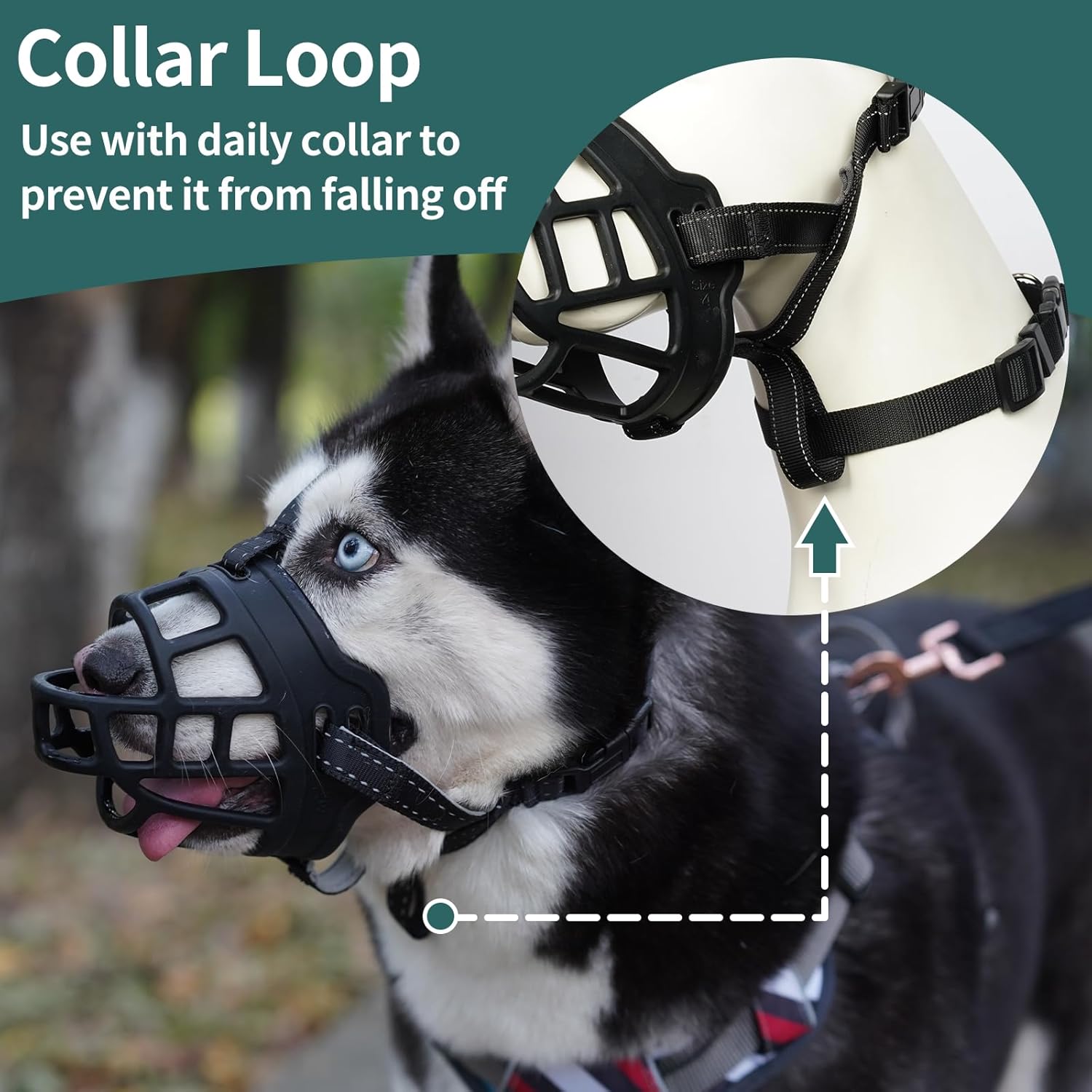 - Stable and Adjustable: This dog muzzle has one additional safety loops, which can be connected to your dog's regular collar. This is a more sturdy anti-scratch design. Adjustable straps at neck and head helps you to adjust the tightness at will