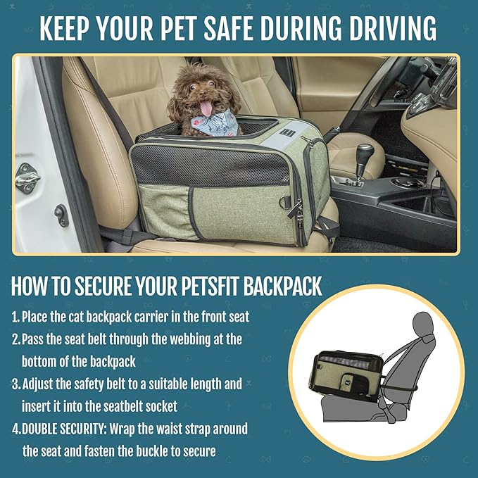 - KEEP YOUR PET SAFE๏ผThe cat backpack carrier adopts durable lockable zipper (in opening) and a build-in safety belt which prevent pet from escaping from inside, thickened zipper on the bottom, fine workmanship, durable and not easy to break ,providing better security for your pets