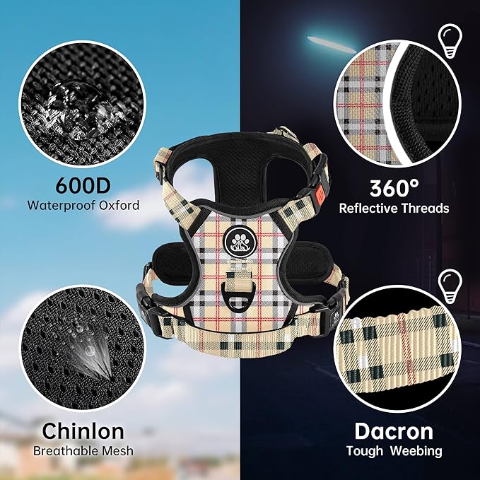 NESTROAD No Pull Dog Harness with Leash, Reflective No Choke Pet Vest Harness,Adjustable Soft Padded Dog Harness with Easy Control Handle for Medium Dogs(Checkered Beige,Medium)
