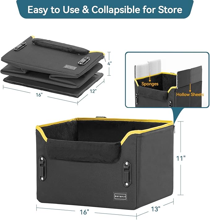 - Easy to Install and Remove: Installation is a breeze with PETSFIT small dog car seat. Equipped with patent safety buckles and adjustable hang webbing, simply fasten the seat belt of your car to secure the pet car seat in place. The innovative design allows the car seat for dogs to be easily folded flat for storage