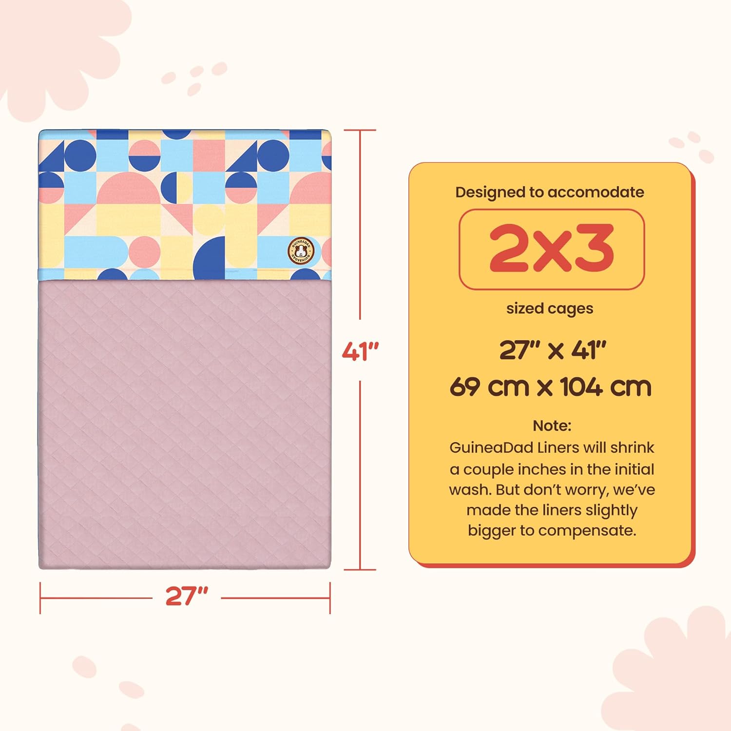 GuineaDad Premium Liner – Fleece Guinea Pig Cage Liner – Ultra-Plush Reusable Fleece Bedding with Waterproof Bottom – Extra Absorbent Liner for 2x3 C&C Cage (Peach Pie)