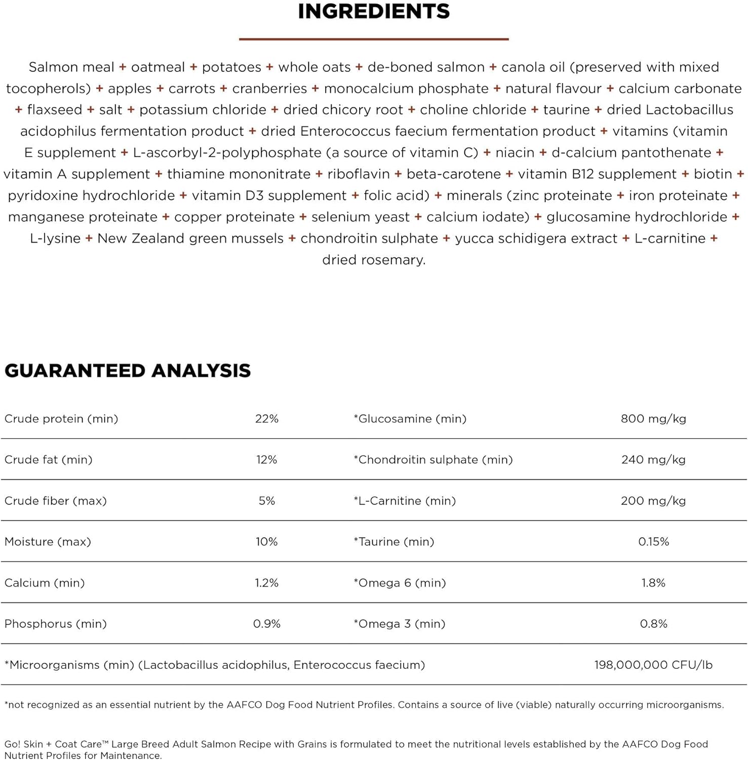 • SKIN & COAT WELLNESS: Help your dog look and feel their best with Go! Solutions' Skin + Coat Care range. Enriched with omega fatty acids which promote healthy skin and a radiant, lustrous coat