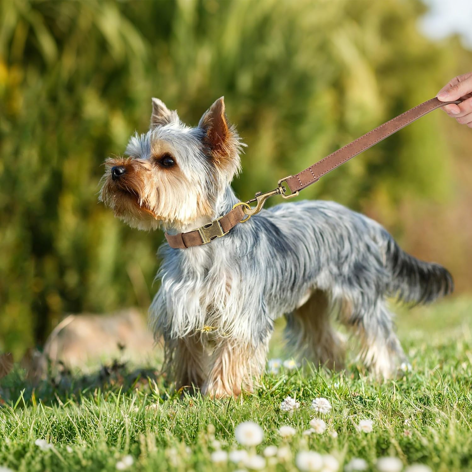 Didog Soft PU Leather Dog Collar, Stylish Quick Released Dog Collars for Small Dogs, Easy Clean Adjustable Pet Collar for Daily Walking, Brown, S Fit 10-16" Neck