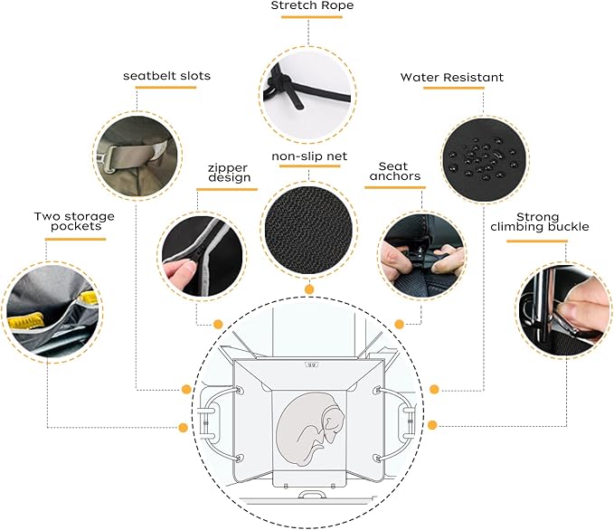 - EASY TO INSTALL&CLEAN : Adjusts easy and stays put.The side flap will be fixed to the door handle to increase its stability. It can be used on the left or right side of the back seat.To clean, simply wipe it or remove it and wash with a hose then hang to dry.