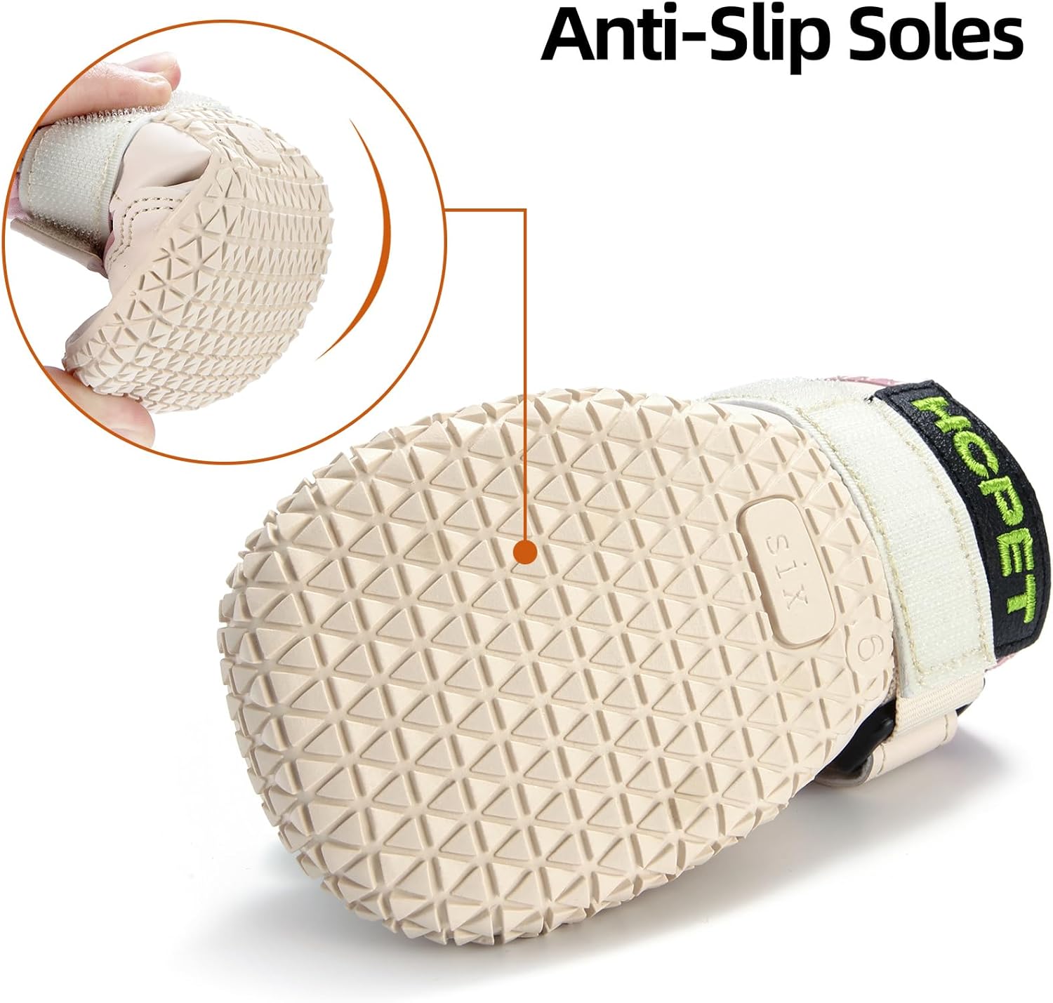 - All-season comfort: Made from skin-friendly breathable nylon fabric; soft on paws, making these dog booties suitable for indoor and outdoor use in hot, cold, wet, or dry conditions; effectively shields paws from sharp thorns, hot pavement, stones, and glass