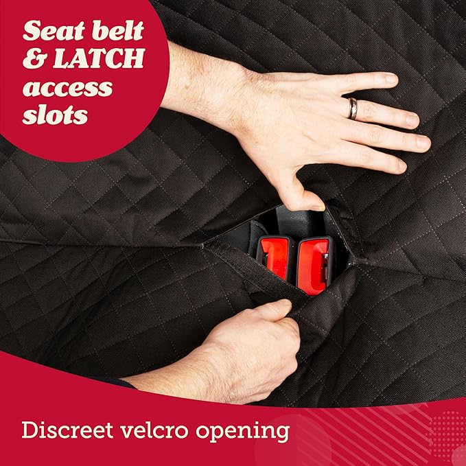 - Easy Access for Everyone: This car seat protector doesn't block seatbelts or latch points, making it great for both kids and pets. Extra-wide slots make fitting child seats a breeze, adding practicality to your car camping gear collection