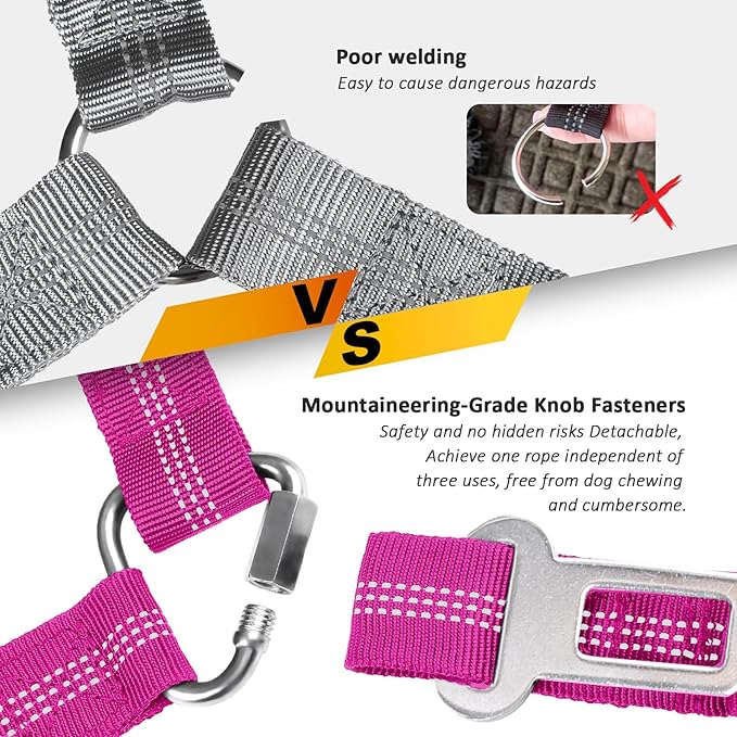 - 🐕【3-in-1 Multiple Uses Designed】 For effective restraint and protection during travel. 👉The dog seatbelt can be hung on the seat back rest 👉or inserted separately in the seat belt buckle, Dog Car Seat Cover,👉Equipped with elastic elastic rope and reflective rope design, can be used as a dog leash, so that you hold the dog partner safe night walk. Dog seat belt harness for car is perfect for pet lovers who like to take their dogs on the road, to ensure the safety of your dog while you drive.