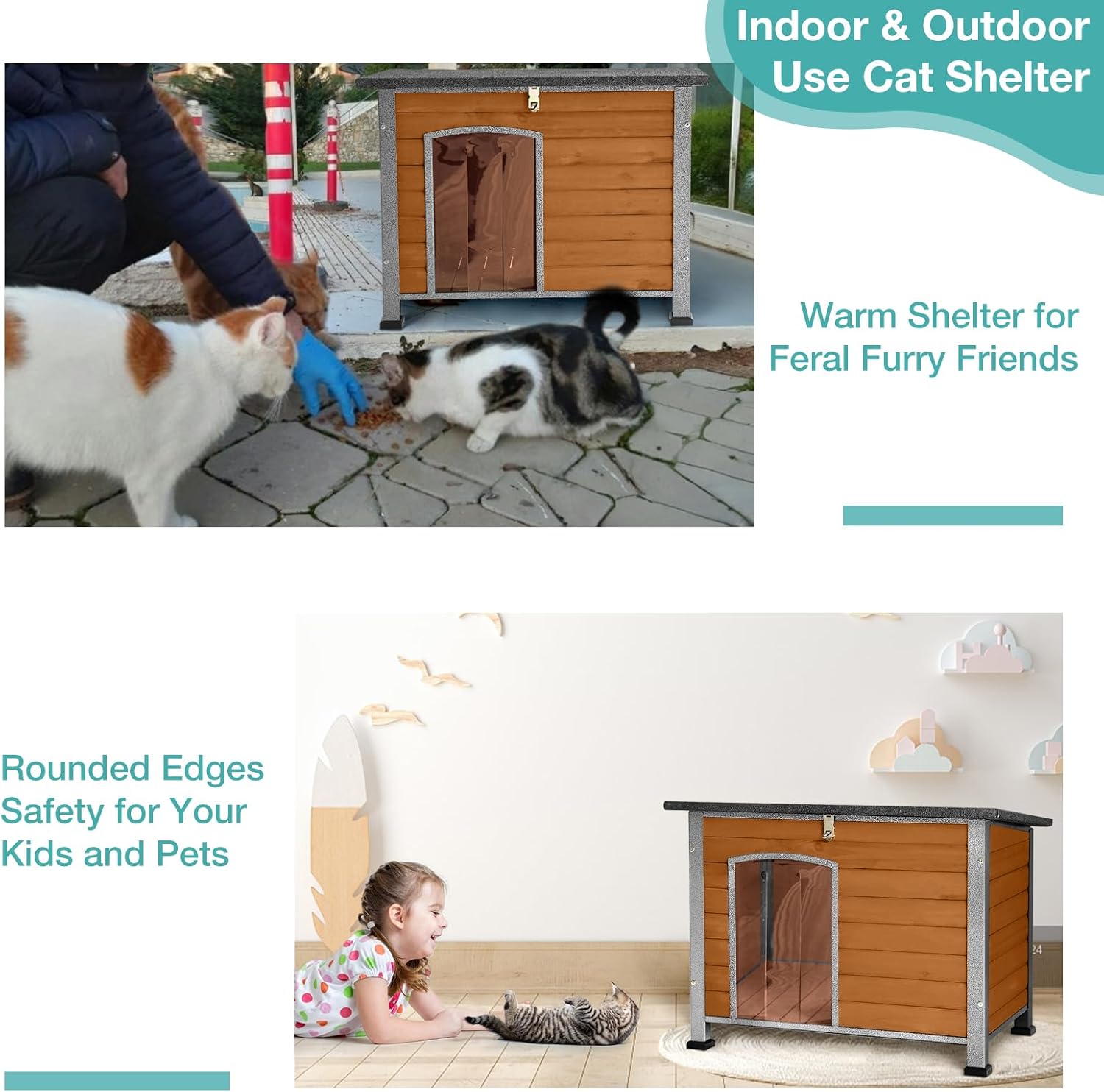 - Perfect Design for Indoor Outdoor:The dog shelter made of waterproof and weatherproof material,keep away rain and water in raining days.Large enough space add a pet heating pads in snowing days,Open the roof and floor to dissipate heat in summer.This dog house is suitable for all the seasons.