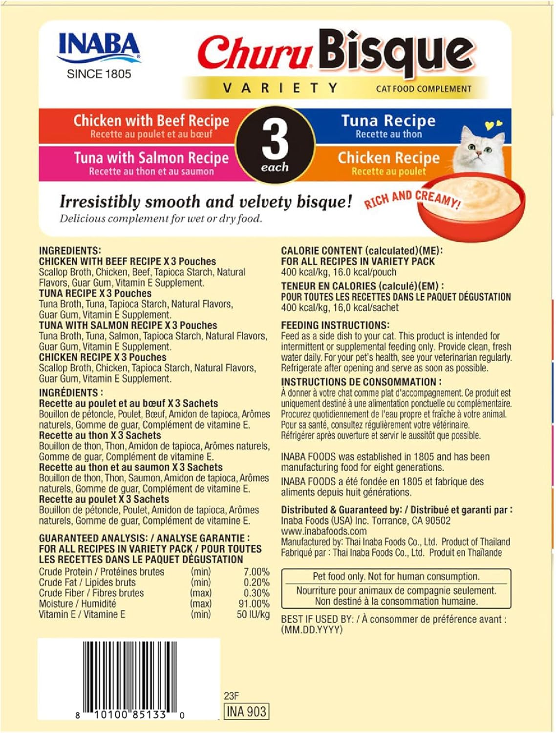 - MADE WITH WHOLESOME INGREDIENTS YOU CAN TRUST: Every Inaba product is made with yummy high-quality ingredients including farm-raised chicken and/or natural wild-caught tuna