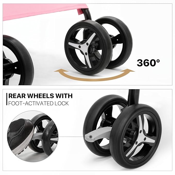 - Safety First - Navigate with confidence using our all-terrain pet stroller, featuring smooth-rolling wheels for all types of surfaces and equipped with dependable rear wheel brakes for your pet's safety and your peace of mind.