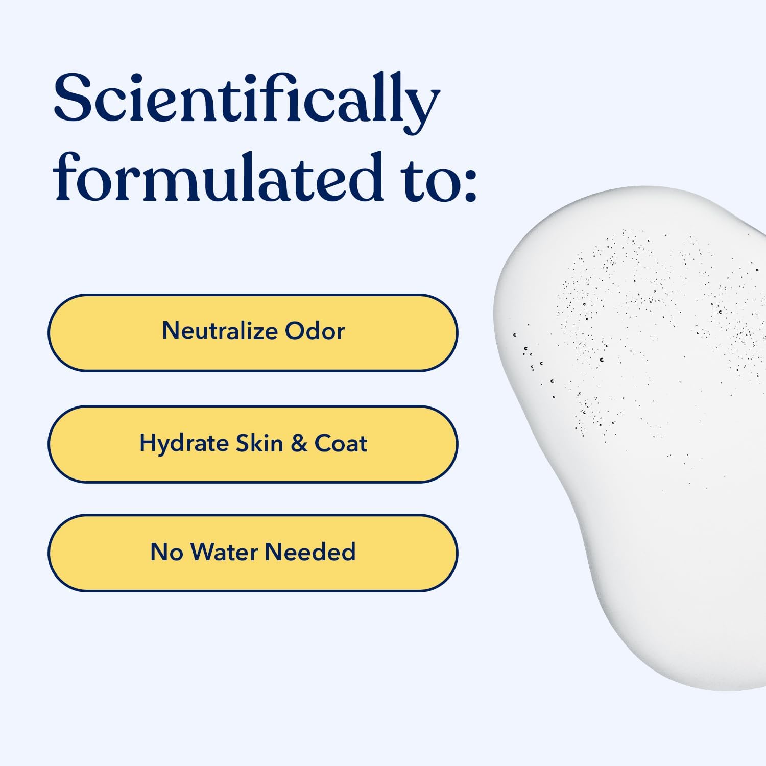 - Product Benefits : Cleanses, Neutralizes odors, Hydrates skin and coat, Nourishes skin, No water required, Free of parabens, sulfates, phosphate, DEA, MEA Cleanses, Neutralizes odors, Hydrates skin and coat, Nourishes skin, No water required, Free ofโฆ See more