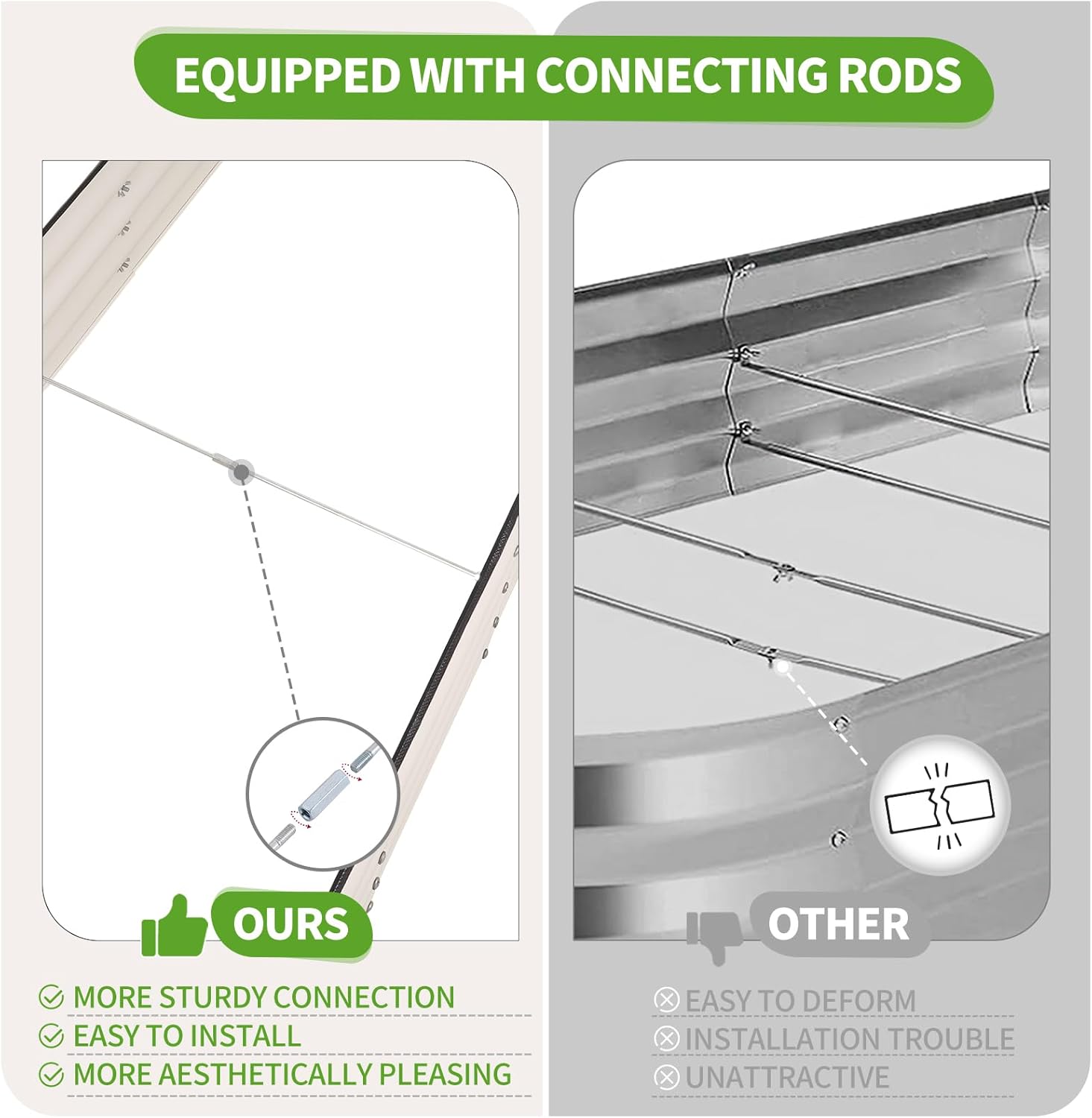 • 【Double Reinforced Connecting Rods】The 8x2x1FT large raised beds for gardening provide enough space to grow the vegetables you want. There are two rotating support rods in the middle, There are two rotating support rods in the middle, which are easy to install and used to reinforce and stabilize your plant box