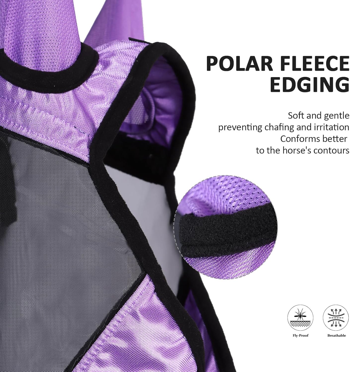 - Lightweight, Multi-Function Fabrics: Ultra-fine, ventilating, and long-lasting nylon mesh offers reliable UV protection for your horse's skin, it effectively prevents sun damage and bleaching. Quality edging along the nose cover enhances durability.