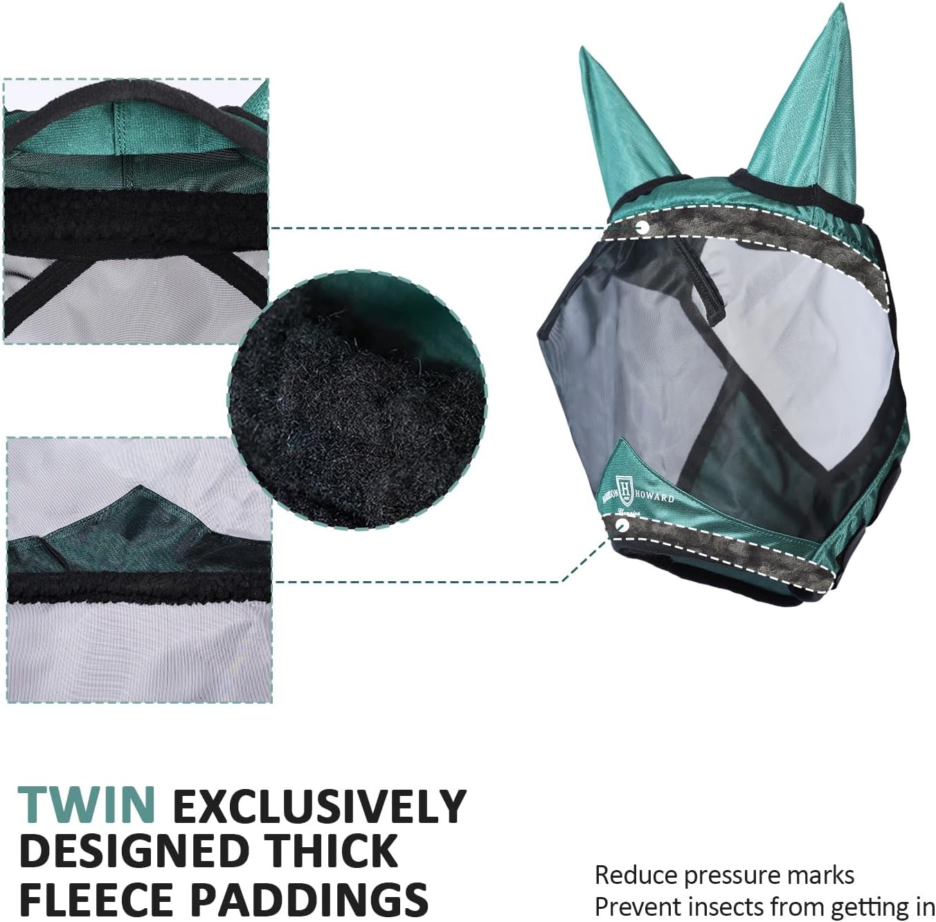 - Thick Fleece Padding: Fleece padding along the seams on the inner forehead and nose eliminates rubbing (does not rub your horse's hair), as well as reduces gaps and minimizes pressure marks.