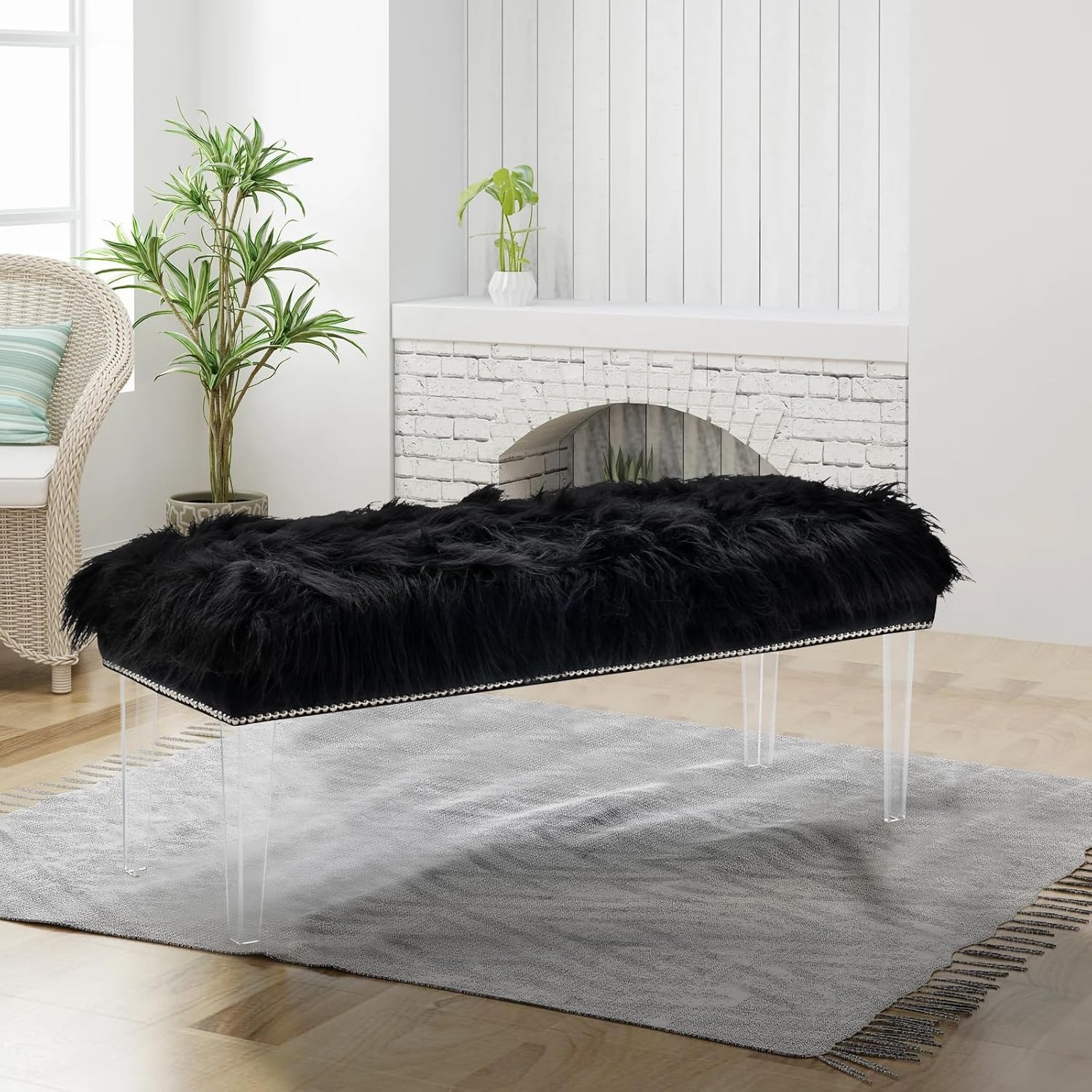 - Gorgeous and Stylish Design: Featuring an extremely steady acrylic leg, this elegant accent piece provides both functionality and a focal point of color and style that seamlessly blend with your main furniture to create a dynamic and cozy interior space to come home to. Just style your home with an attractive ottoman bench. The fluffy fur makes the chair look delicate