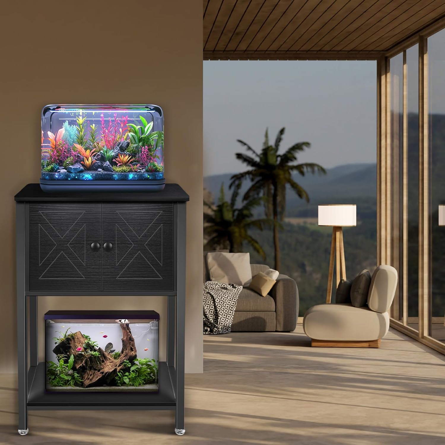 • Fashionable & Unique Design: Black fish tank stand feature a sleek modern design that complements a variety of home decor styles. It is not only a practical fish tank rack, but also an exquisite home decoration, bringing a distinctive and stylish atmosphere to your home