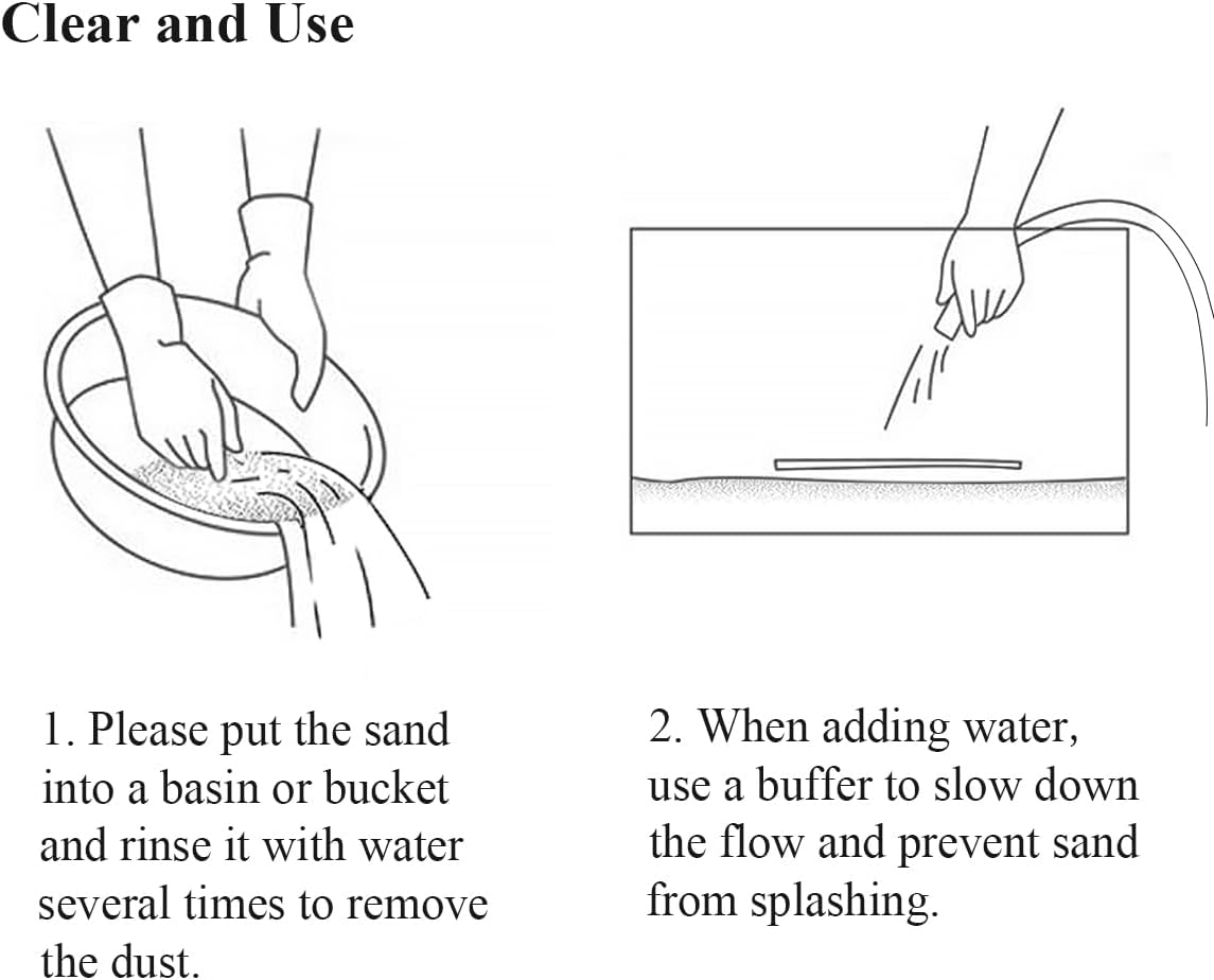 - 【Safe】 No toxins, no foreign matter, natural fine sand. Note: the fine sand has some dust and needs to be washed with water a couple of times before putting it into the tank