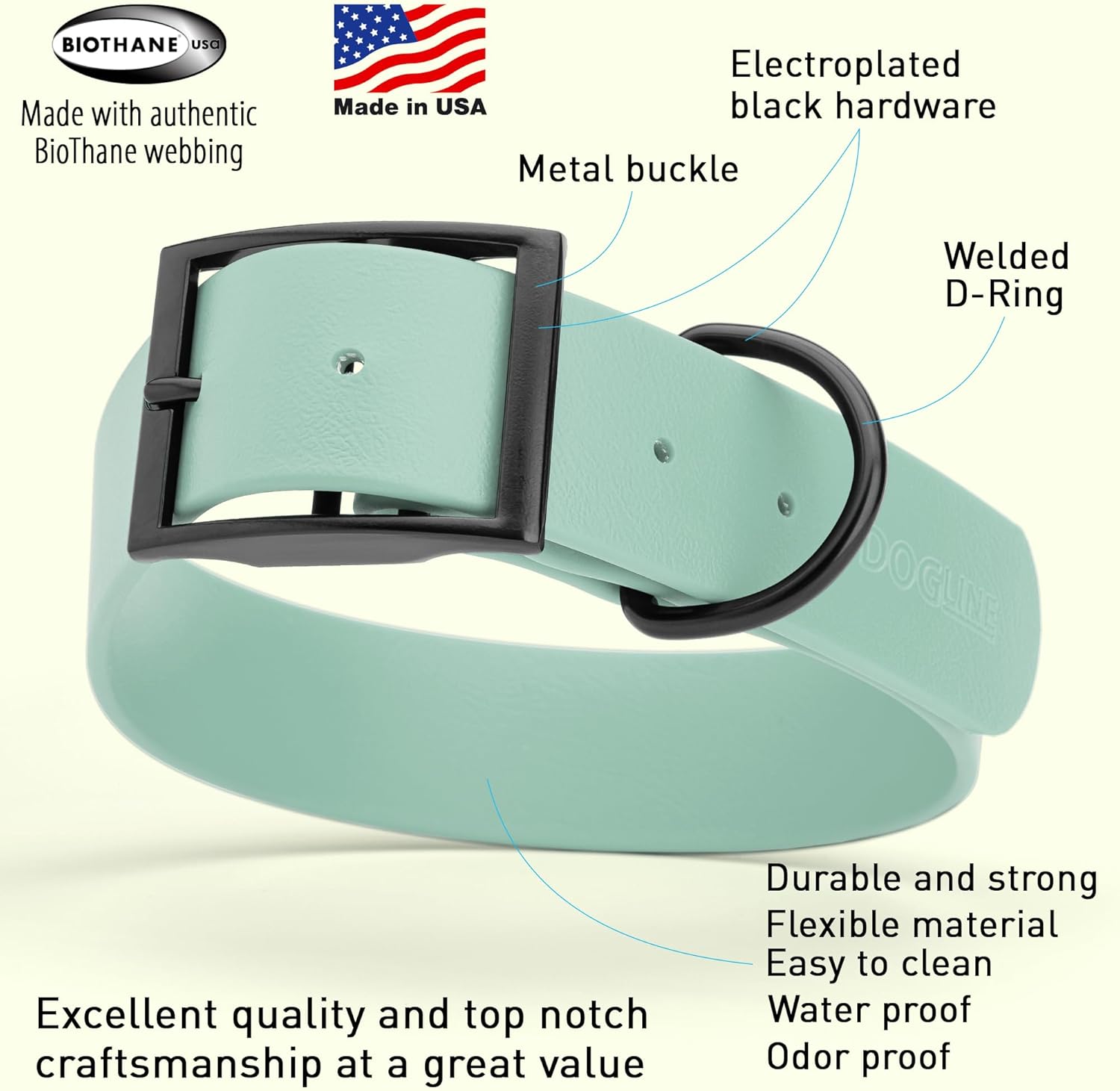 - Free Your Dog to romp in puddles and retrieve from lakes with the Dogline Biothane Waterproof Dog Collar. This water-repellent collar stays dry and odor-free, without shrinking or losing flexibility.