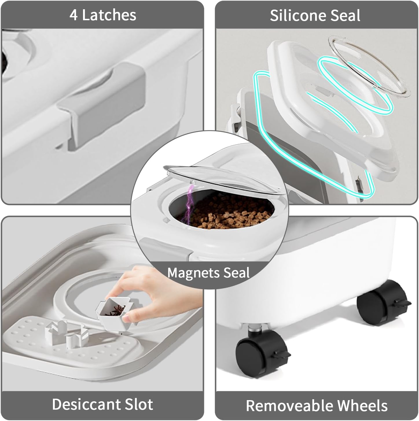 - SUPERIOR SEALING: NXIZOLI airtight dog food storage container uses silicone ring sealing to keep pet food fresh. The slot can store desiccant, garlic, and aniseed, effectively keeping moisture away