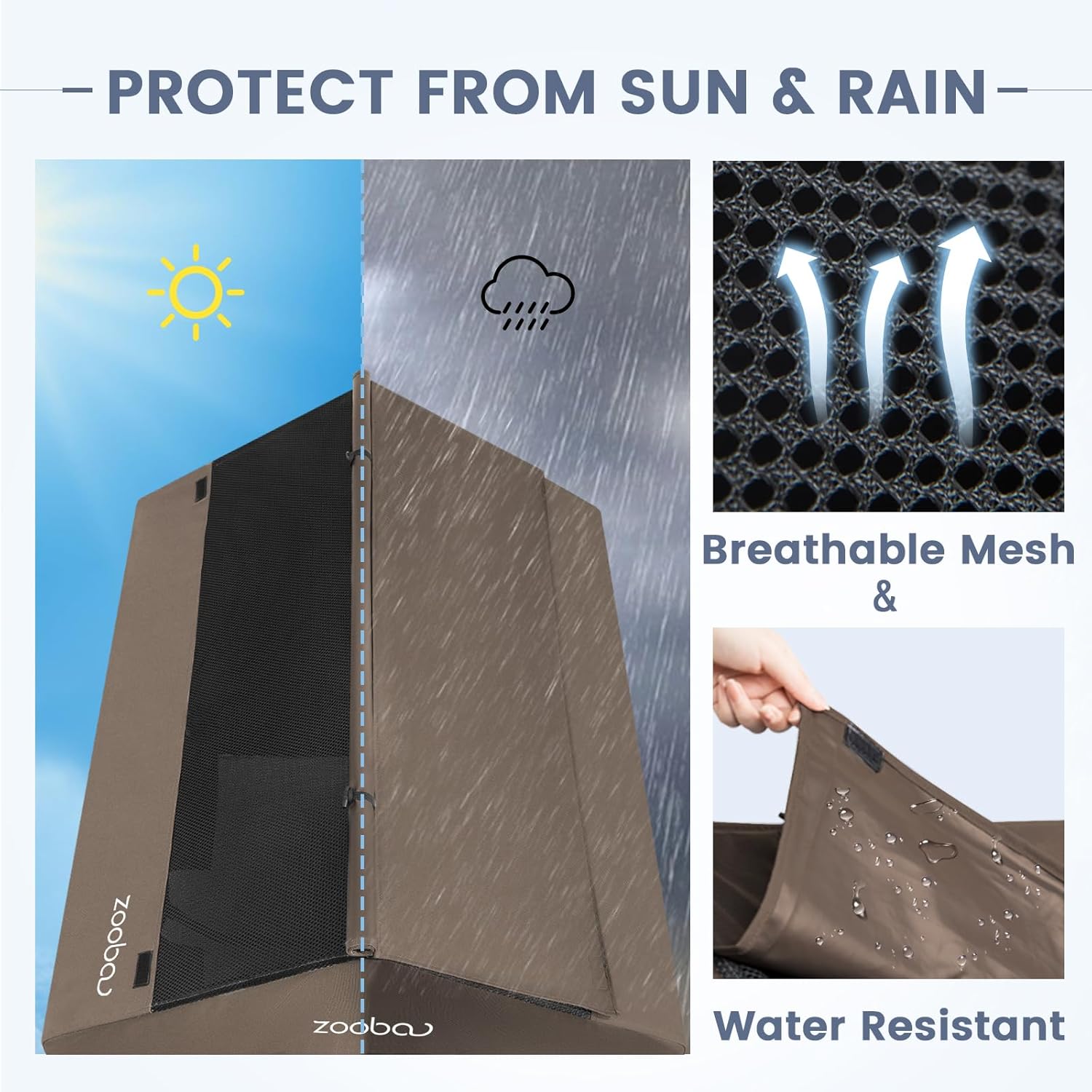 - Upgraded Durability for Outdoor Shelter: Step into the future of pet housing with our latest upgrade. Boasting an extra-thick 600D PVC oxford fabric, our outdoor dog house ensures robust weatherproof protection. The 190g mesh fabric promotes a breezy sanctuary, offering a harmonious blend of toughness and tranquility for your dog's indoor or outdoor moments.