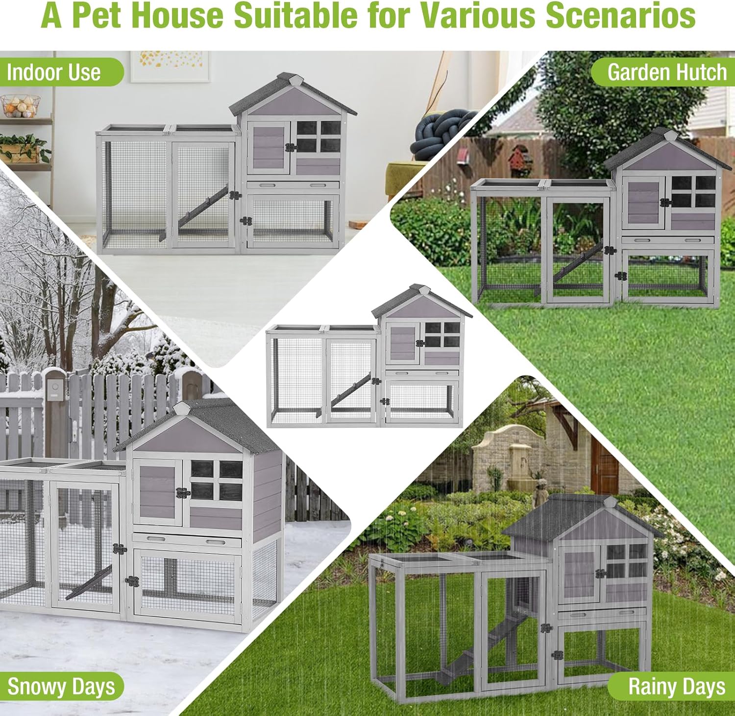 GUTINNEEN Rabbit Hutch Indoor Chicken Coop Outdoor, 51.6''L 2 Story Bunny Cage Weatherproof, Guinea Pig House with Run (Grey)
