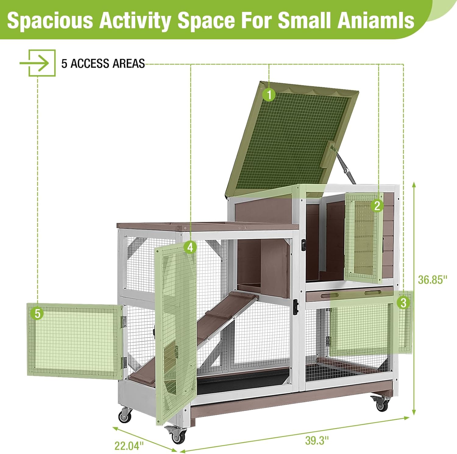 • Cozy Home for Pets: Our 2-story hutch, sized at 39.37’’L*22.04’’W*36.8’’H, is a spacious sanctuary for your small animals like guinea pigs, rabbits, or chicks, offering them a comfortable and secure place to play and rest