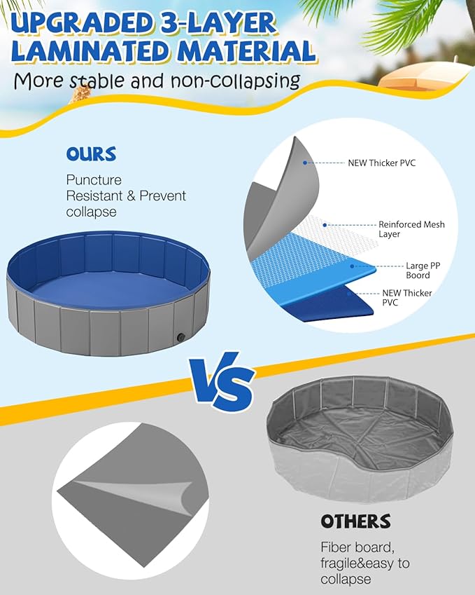YSJILIDE Portable Dog Pool PVC Pet Swimming Bathtub Collapsible Hard Plastic Pool for Pets to Swim and Bath (XL-63"x 12"Dark Grey)