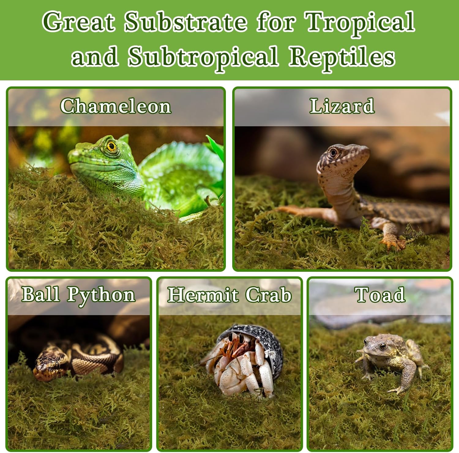• Great Humidity Retention & Breathability: This terrarium moss is fluffy and absorbent, can provide a moist living environment for your reptiles. The moss also has an insulating effect, which will help the reptiles have a safe and cozy winter.