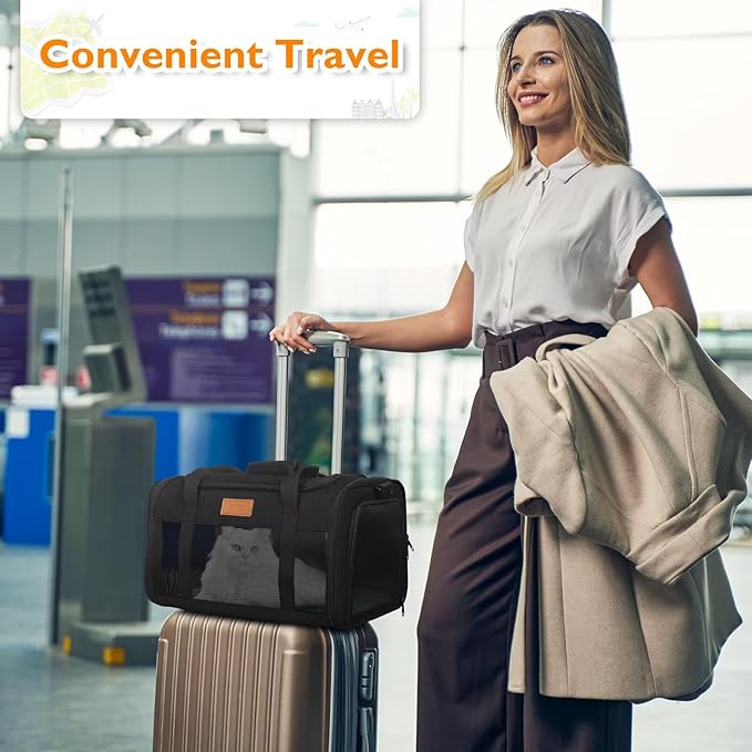 - 【Durable, Safe & Waterproof Soft-Sided Cat Carrier】 Crafted from high-quality, waterproof fabric, the PETUX cat bag carrier offers protection against the elements. It has a safe leash and a compact design that fits under the seat, allowing you to take your pet with you on your flights without worry. The top opening makes it easy to access your pet and provides comfort during travel. So the TSA-approved pet carrier in the cabin is also easy to wipe clean, making it ideal for frequent travelers