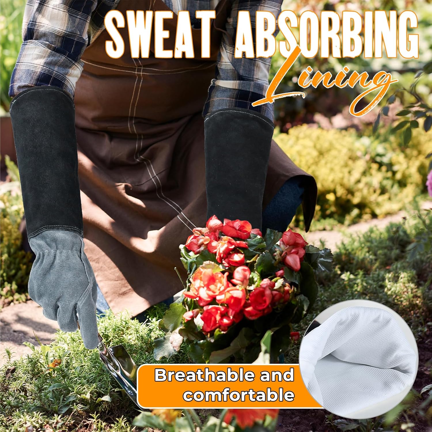 • Forearm Protection & Snug Fit: Feature cowhide leather long sleeves that extend up to forearms that protect them from cuts and scratches, keeping your hands and forearms safe and comfortable. Elastic wrist closure offers a snug and comfortable fit to keep the gloves securely on your hands. Perfect for tasks that require reaching into dense foliage or handling thorny plants
