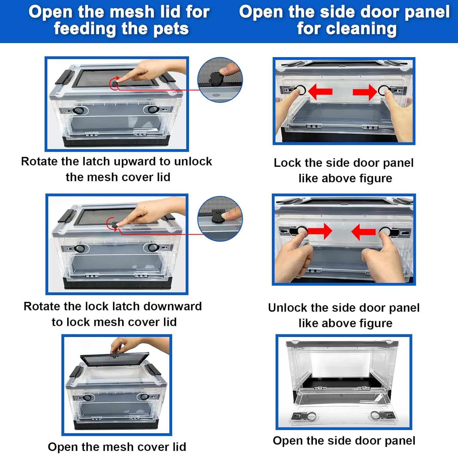 • 【Flexible opening and closing cover and side door】The top mesh lid can be opened and closed for better air flow and easy pet feeding;The Front panel can be opened and closed for easy cleaning of pet house