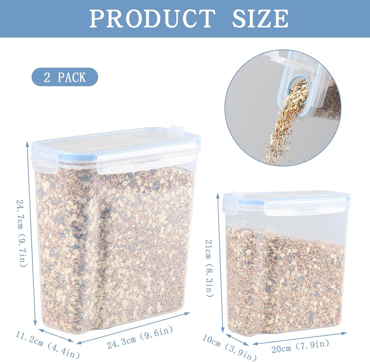 2Pack Bird Food Storage Container 3.52qt/4L & 2.2qt/2.5L, Airtight Pet Food Containers with Lids, Medium Latched Bird Seed Dispenser, BPA-Free