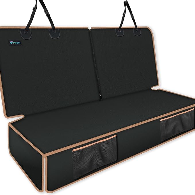 - 【Secure & Stable】: Meginc Full-Size Truck dog seat cover for back seat features a non-slip dotted bottom design, reinforced with safety anchors and extra straps to prevent shifting during your pet's movement, ensuring a safe and comfortable ride for your furry companion.
