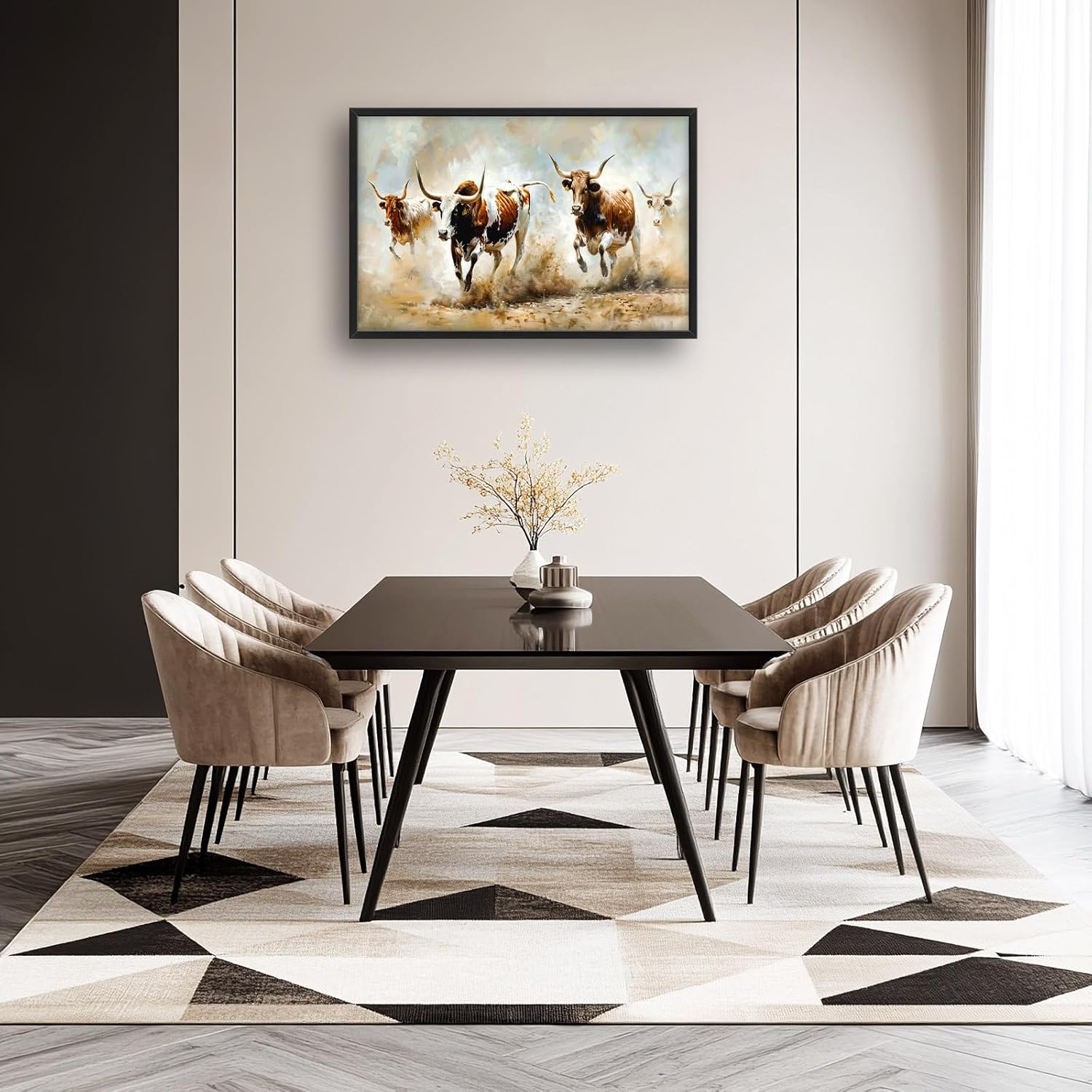 Highland Cow Large Wall Art Wild Animal Running Pictures Farmhouse Rustic Longhorn Wall Decor Canvas Print Painting Artwork for Bathroom Living Room Bedroom 36L" x 24W"