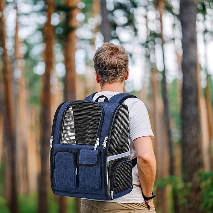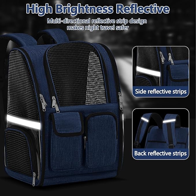 Pet Backpack, Airline Approved Dog Backpack, Cat Bag for Travel Hiking Bike Riding Walking Outdoor, Cat Backpack with Breathable Mesh(Blue)