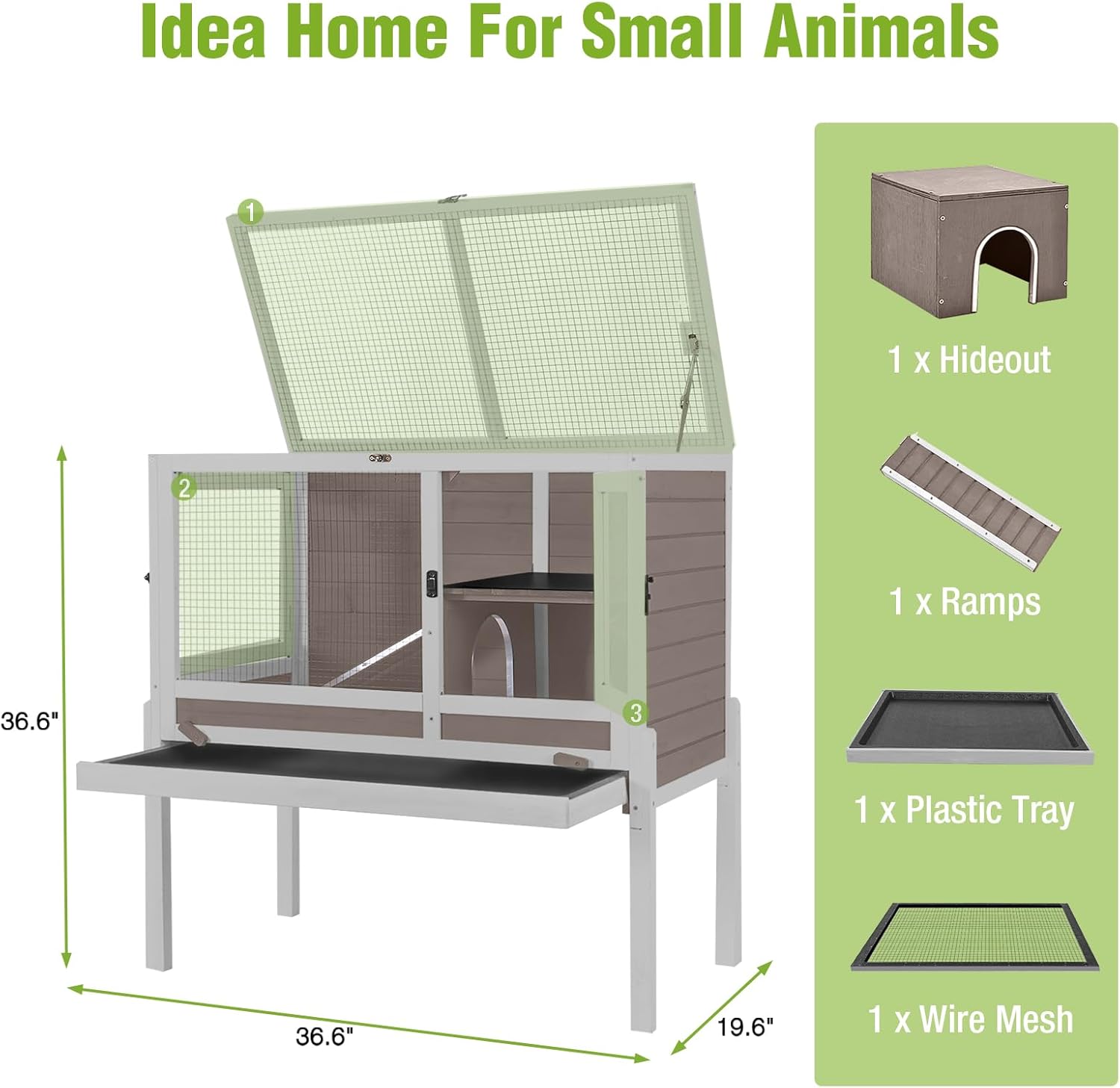 GUTINNEEN Rabbit Hutch Guinea Pig Cages Indoor with Stand Wooden Small Animals Cage Hutch Hamster Cage with Hideout,Pull Out Tray, Anti Chew Ramp(Brown)