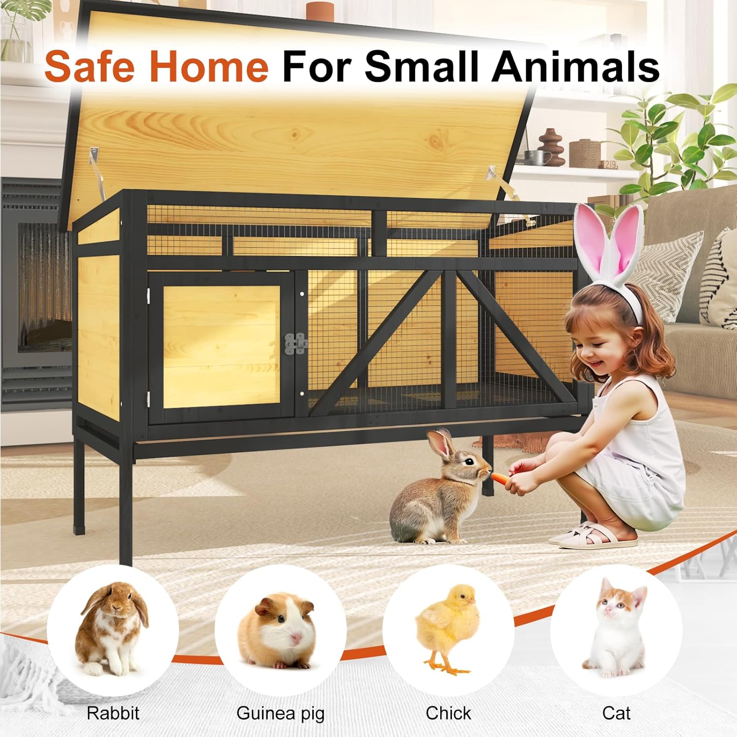 - Spacious & Comfortable Living Space for Small Pets:The TIMHAKA rabbit cage, which also serves as an excellent bunny cage, has an impressive size of 46.7 inches. This large rabbit hutch provides ample room for rabbits, hamsters, or guinea pigs to move around freely, stretch, and play. Whether used as a rabbit cage indoor or placed in an outdoor area as a rabbit hutch outdoor, it ensures your furry friends have a happy and healthy life with enough space for their daily activities.