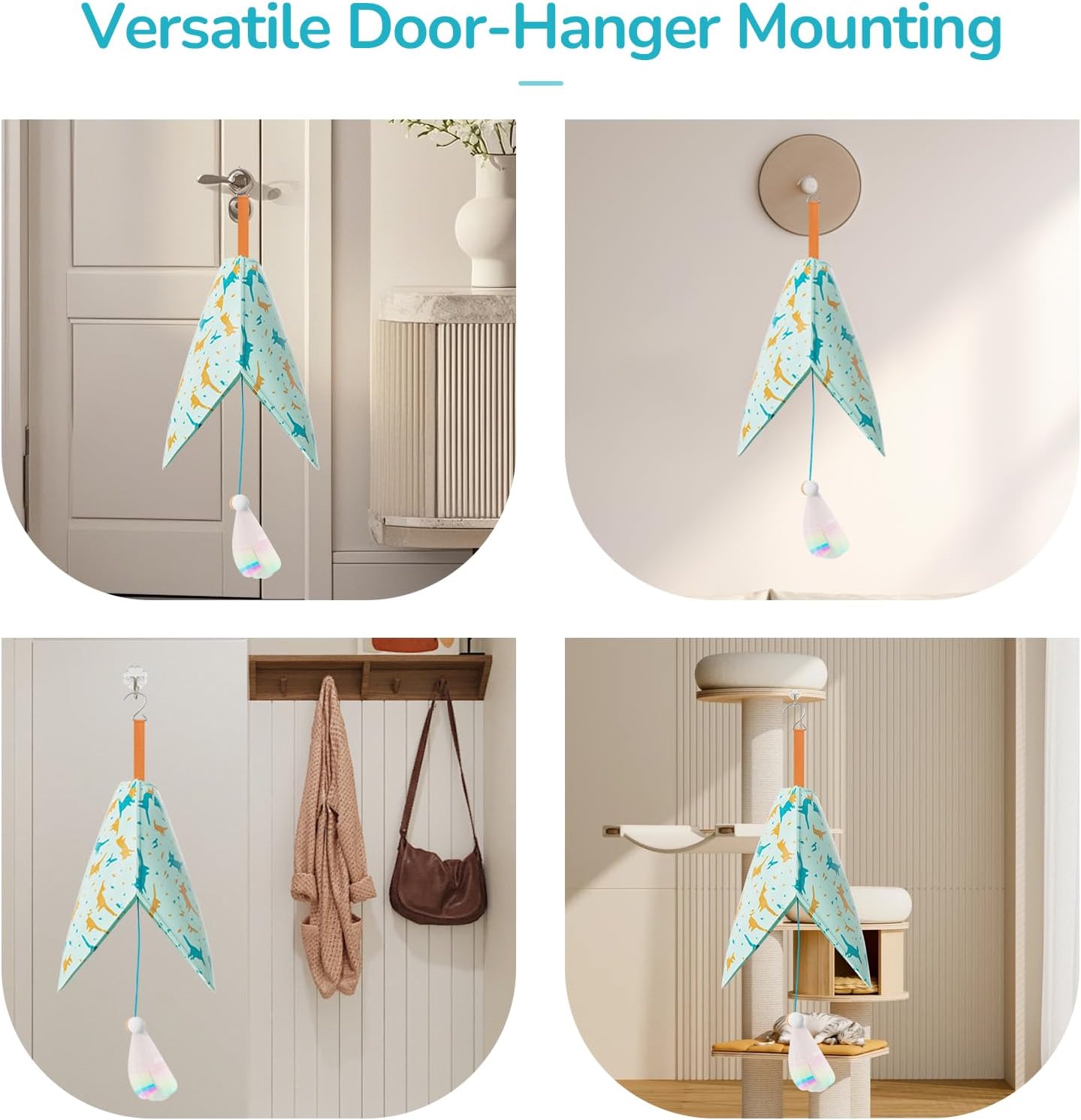 - Door-Hanger Delight: Easily attach it to a door handle! This unique position creates a fresh, exciting challenge that strongly appeals to your cat's curiosity, offering a novel way to play with interactive cat toys for indoor cats.
