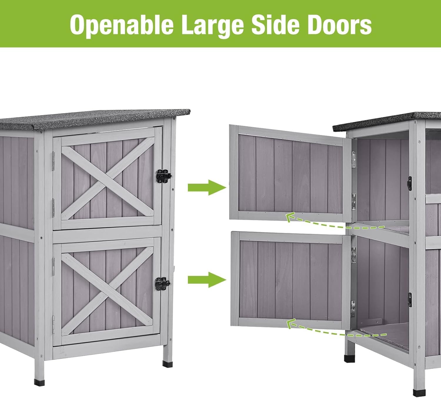 GUTINNEEN Outdoor Cat House Weatheproof Feral Cat Shelter Wooden Cat Condo for Winter with Escape Doors(AIR14)