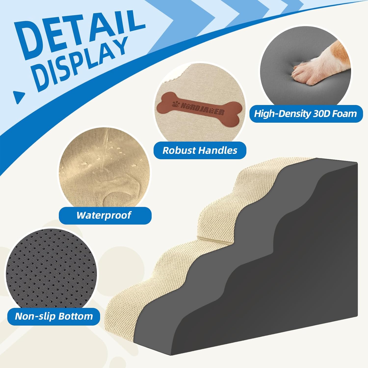 5-Step Spliceable Pet Stairs: Indoor& Outdoor Multi-Use with a Removable Cover and a Pocket, Best for Small Pets and Older Dogs Who Has Spine and Arthritis Issues to Get on High Beds, Beige(22.8" H)