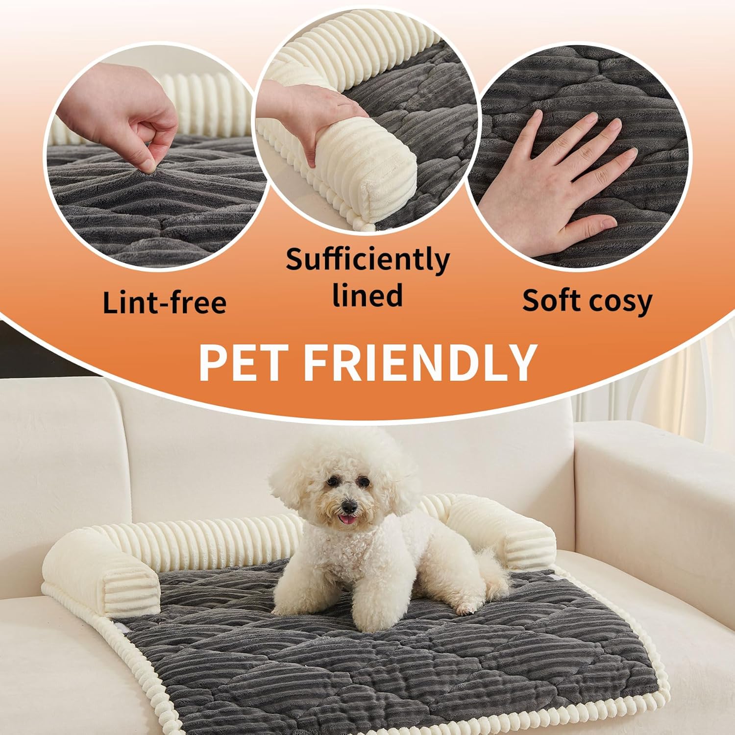 • EXCELLENT NON-SLIP:The back of the non-slip dog bed couch is made of silicone particles adhesive layer, which can achieve a firm fit without displacement. Even if your pet is jumping around on the sofa, dog bed for couch can firmly grasp the surface of the sofa and always keep its position fixed. As a dog bed for couch it also fully protects the sofa from pet scratch marks, hair adhesion and daily stains and wear and tear, making the furniture last as long as new.